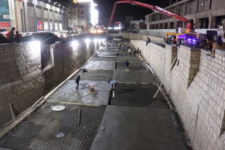 مشروع استكمال الجسر السطحي داخل سائلة الاصبحي وتقاطعه مع شارع المقالح وتاهيل رامبات الدخول والخروج